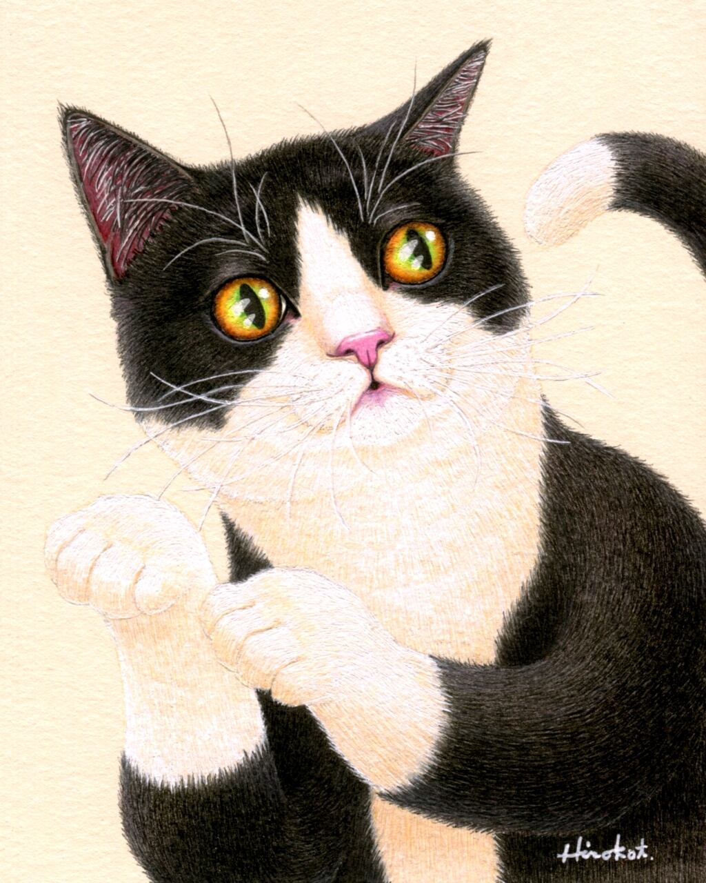 毛の一本一本を何色ものペンで描き上げた細密画の質感をお楽しみください。