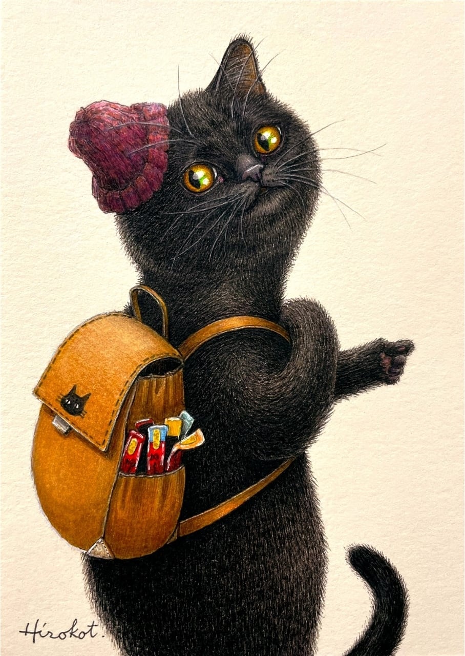 毛の一本一本を何色ものペンで描き上げた細密画の質感をお楽しみください。