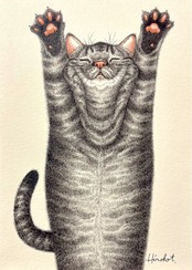 No.181 ねこはのびてこそ 細密画 原画 / No.181 Original Fineliner Artwork