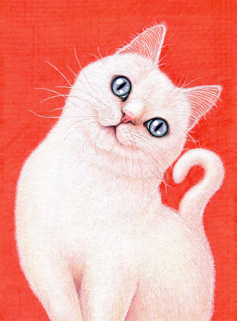 毛の一本一本を何色ものペンで描き上げた細密画の質感をお楽しみください。