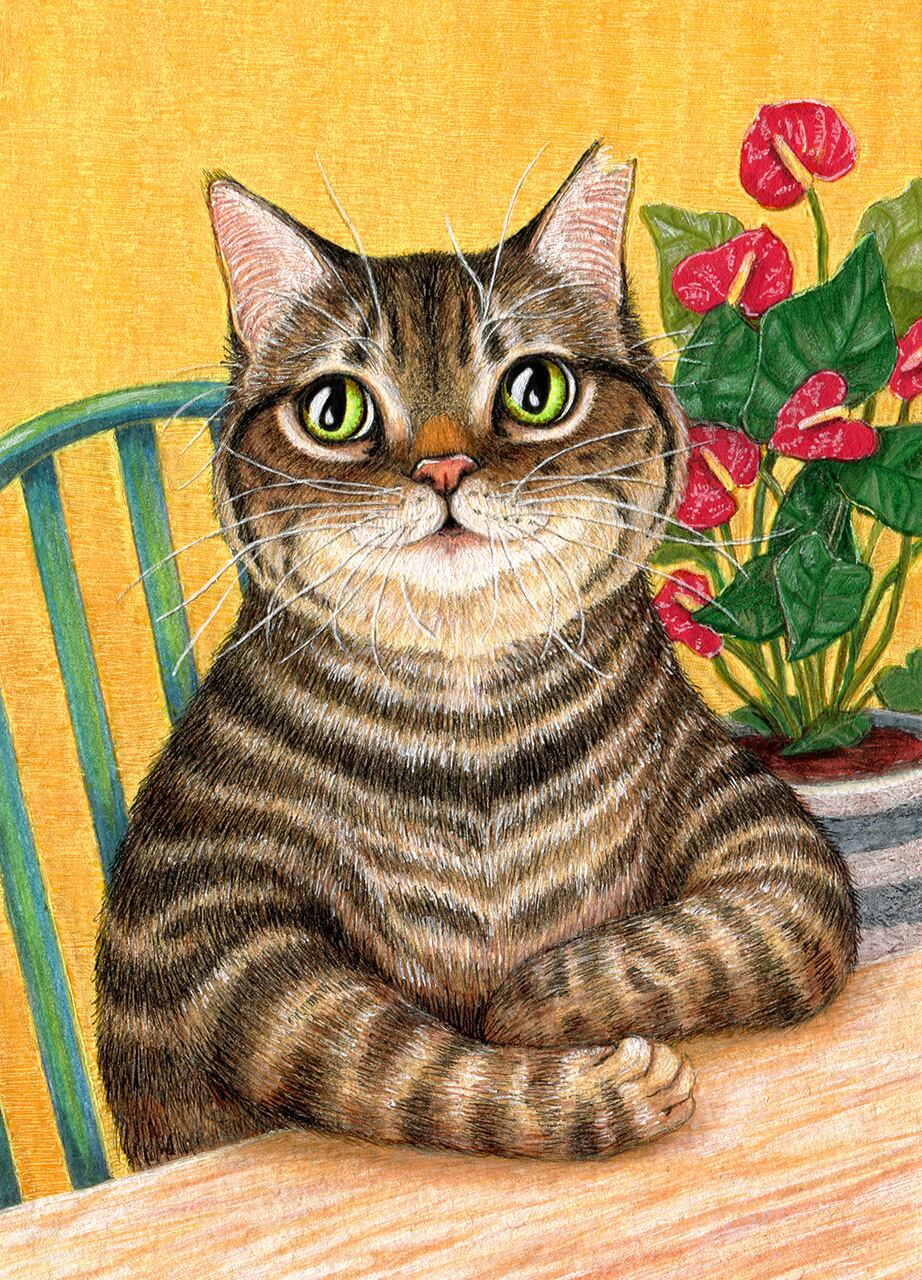 No.169 おやつを待ちわびる猫 細密画 原画 / No.169 Original Fineliner Artwork