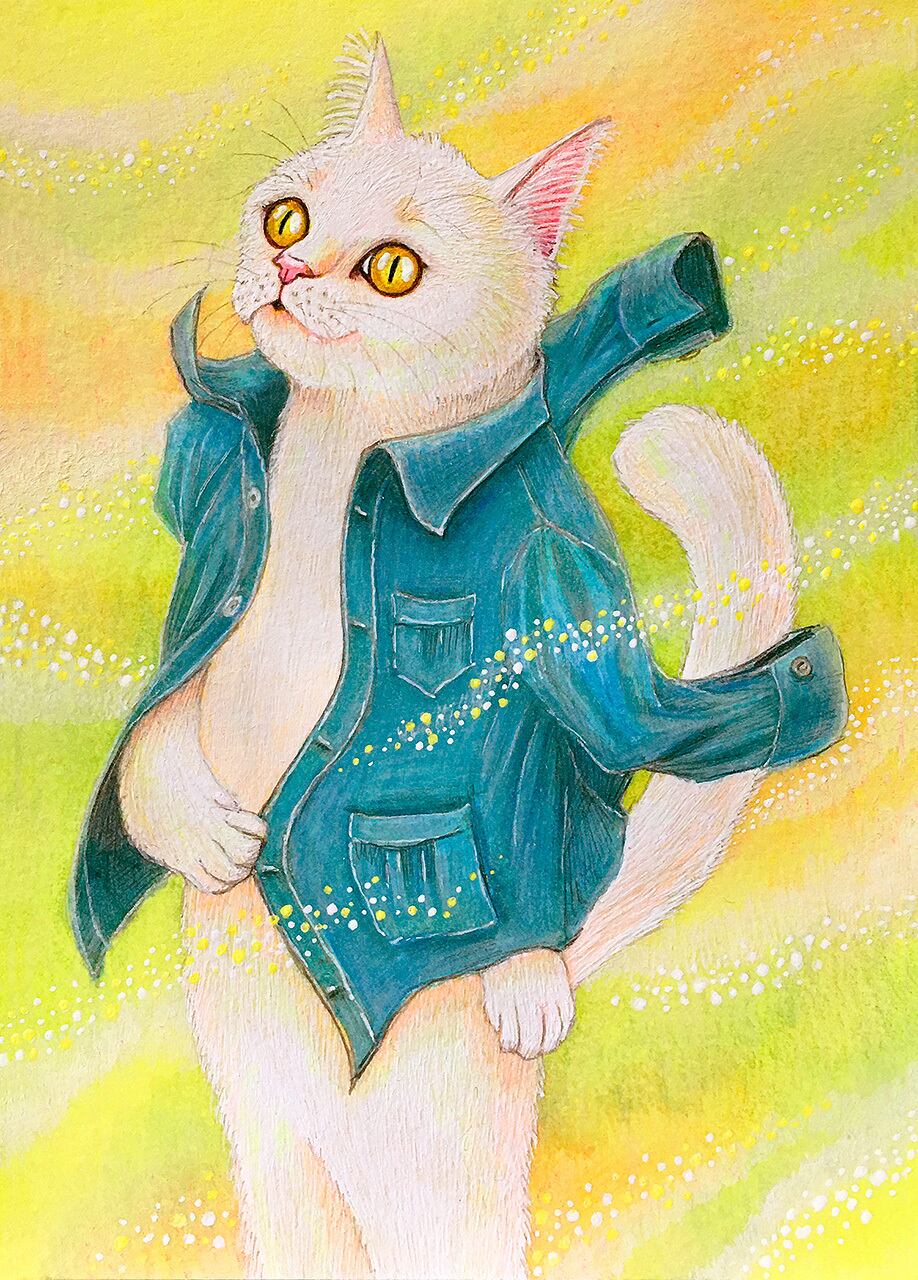毛の一本一本を何色ものペンで描き上げた細密画の質感をお楽しみください。