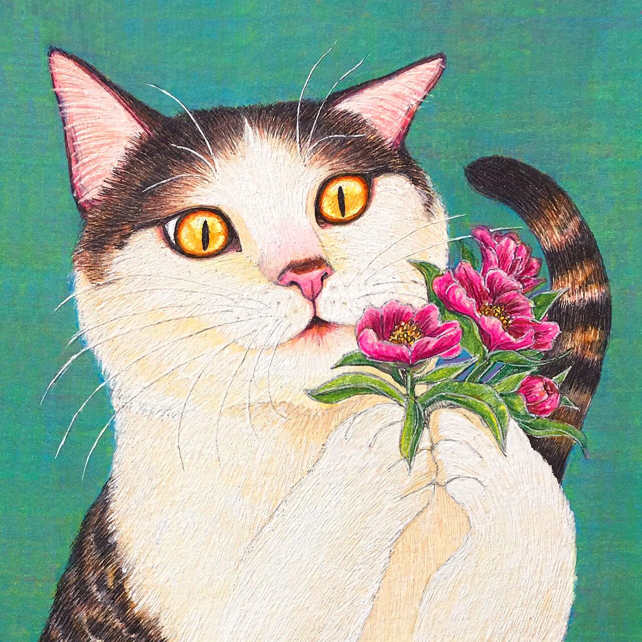 毛の一本一本を何色ものペンで描き上げた細密画の質感をお楽しみください。