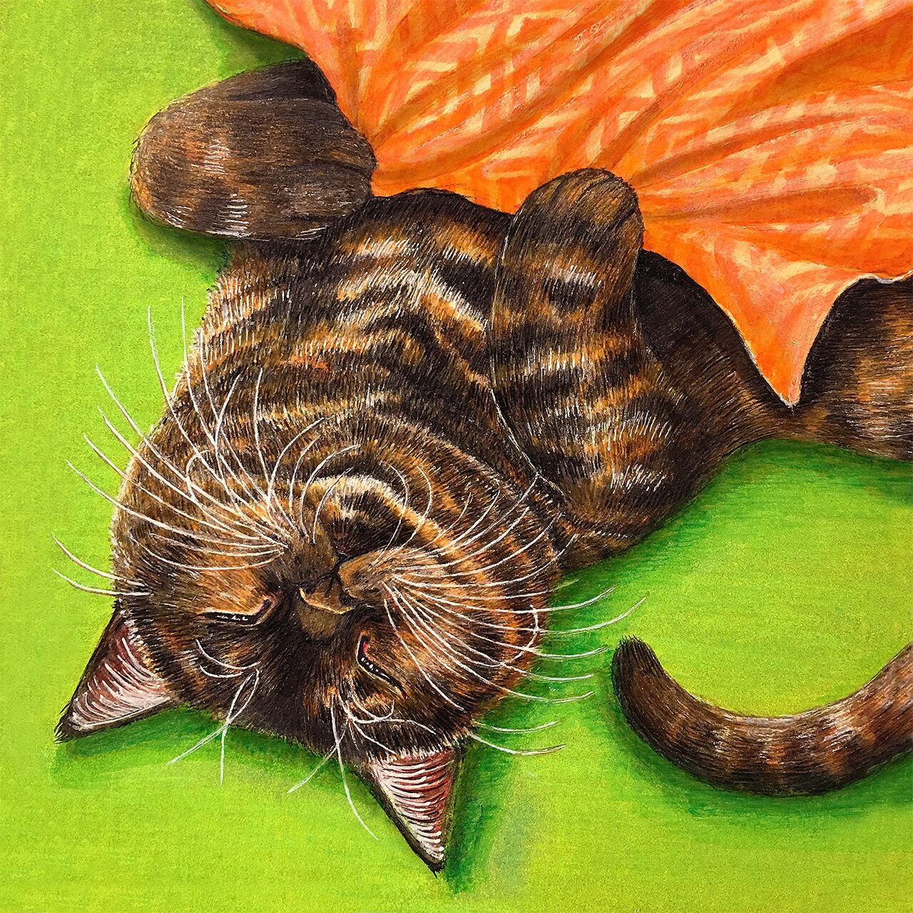 No.130 お昼寝の時間 細密画 原画 / No.130 Original Fineliner Artwork