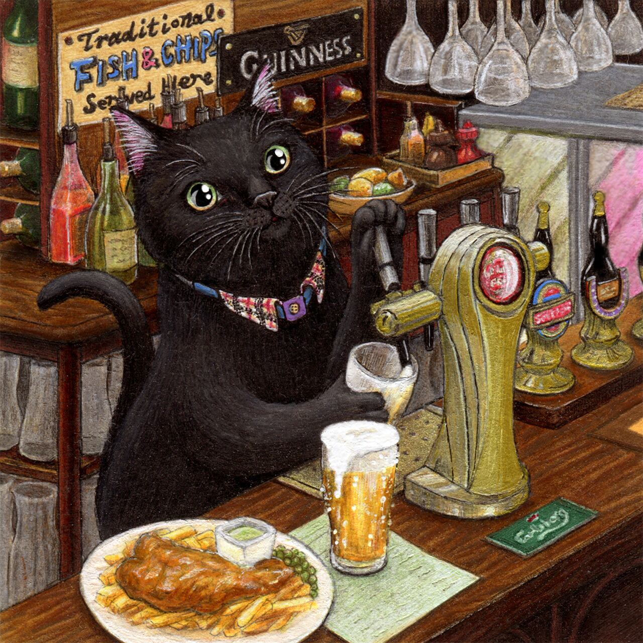 No.115 英国パブのねこ 細密画 原画 / No.115 Original Fineliner Artwork