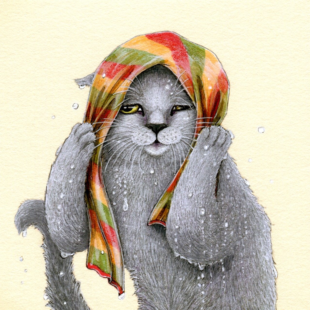 No.103 風呂上がりのねこ 原画 / Original Fineliner Artwork