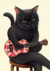 No.090 ウクレレ弾きの黒猫 原画 / Original Fineliner Artwork