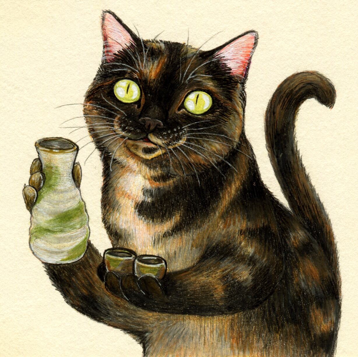 No.073 サビ猫と晩酌 原画 / Original Fineliner Artwork