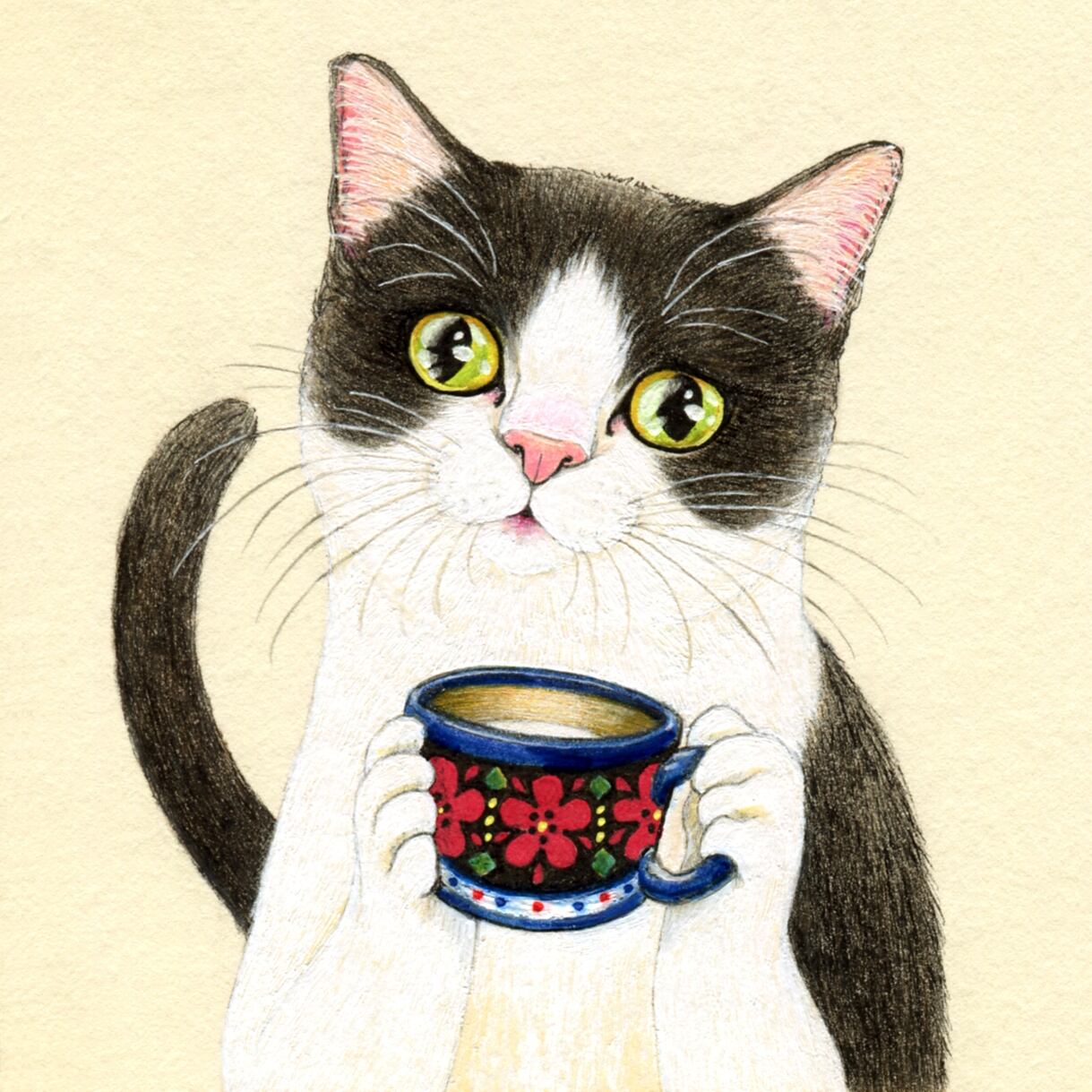 No.062 ハチワレ猫とホットミルク 原画 / Original Fineliner Artwork
