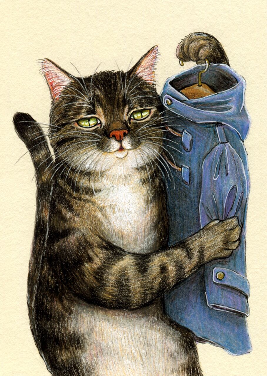 No.060 寒がりねこの冬支度 原画 / Original Fineliner Artwork