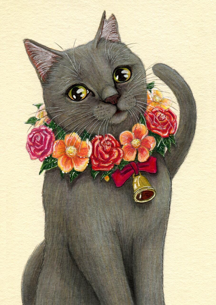 毛の一本一本を何色ものペンで描き上げた細密画の質感をお楽しみください。