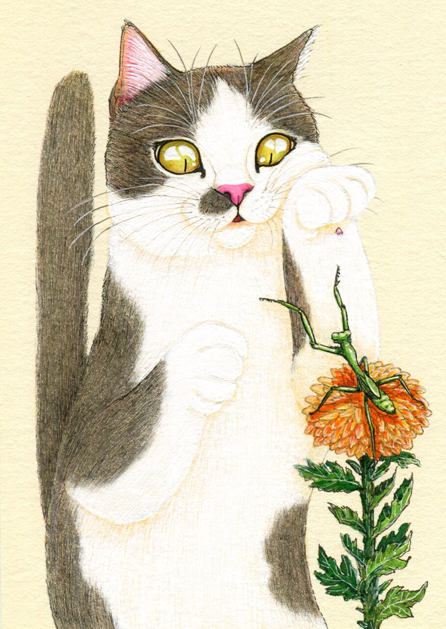 No.046 ねこ対カマキリ 原画 / Original Fineliner Artwork