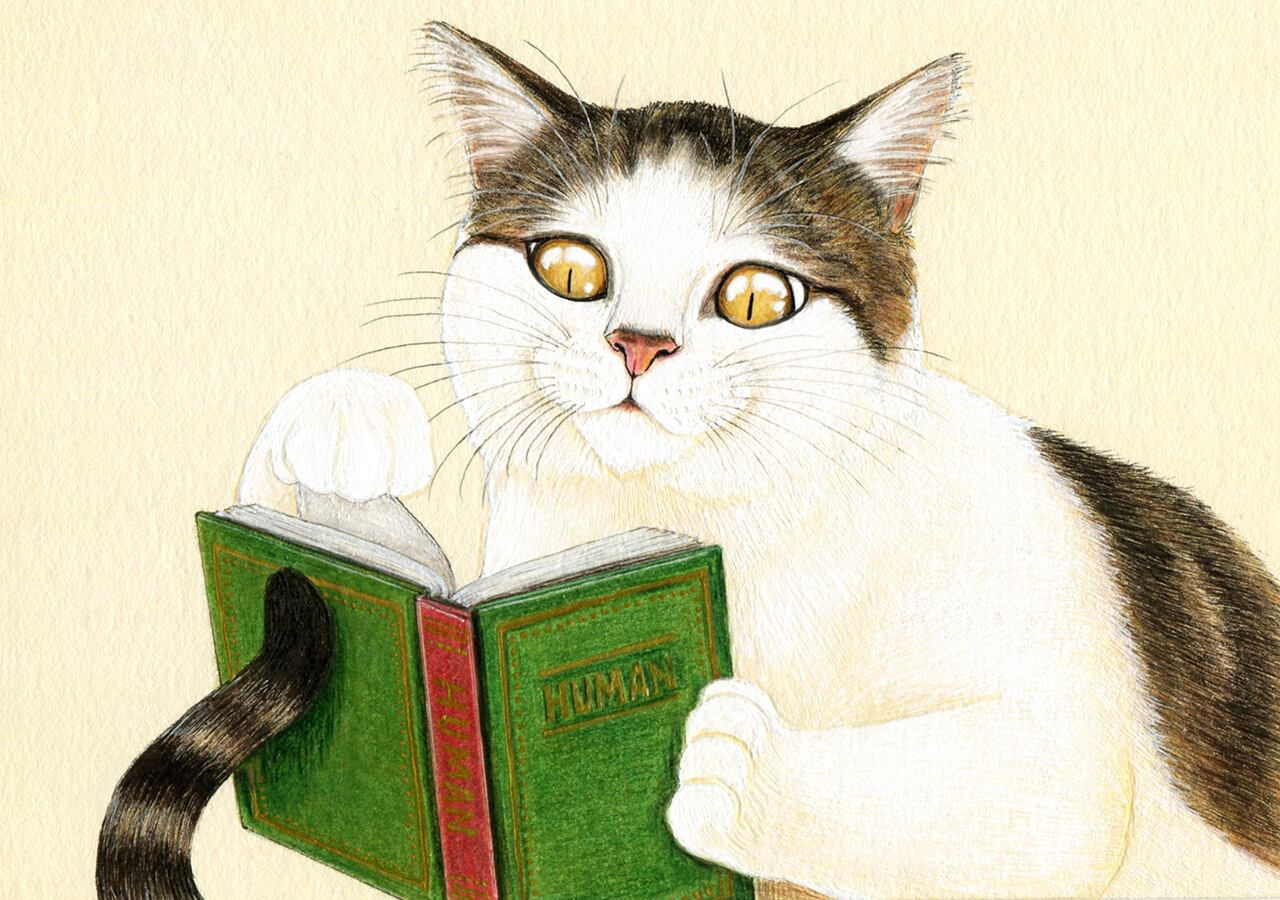 No.045 ねこの自主学習 細密画 原画 / Original Fineliner Artwork