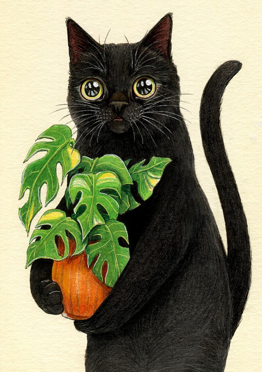 No.042 黒猫同居人 細密画 原画 / Original Fineliner Artwork