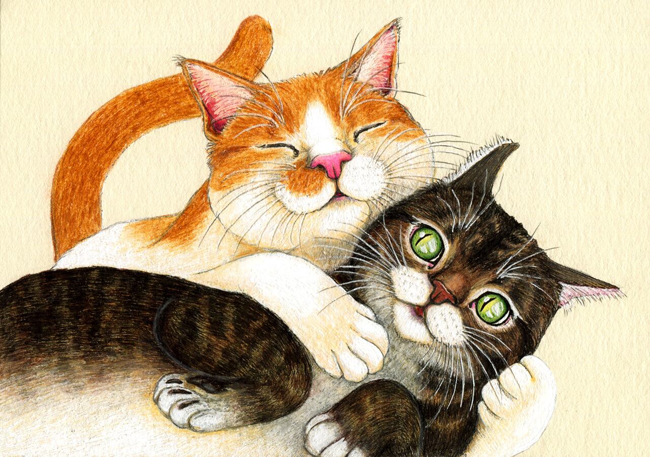 No.018 毛繕いしてあげる 細密画 原画 / Original Fineliner Artwork