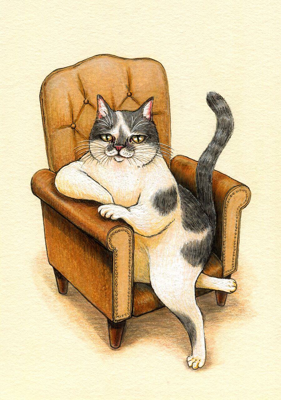 No.004 ねこは聞いている 細密画 原画 / Original Fineliner Artwork