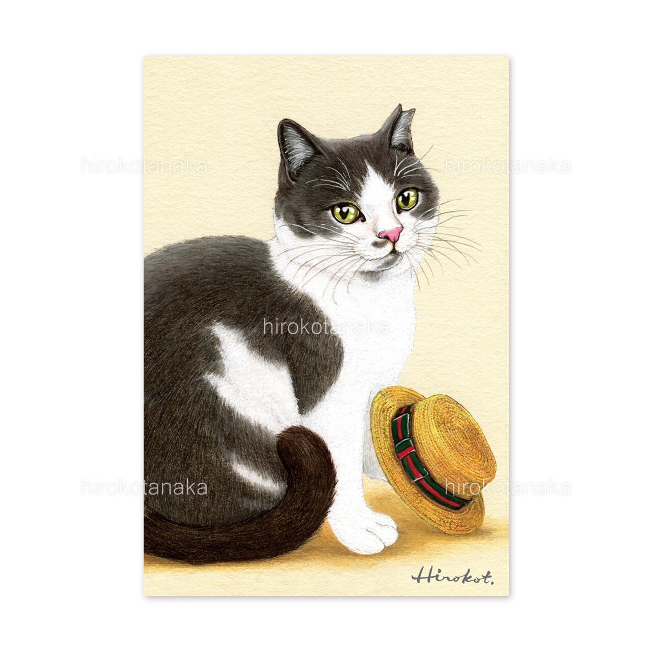 9.ねこと麦わら帽 ポストカード / Cat and Straw Hat Postcard